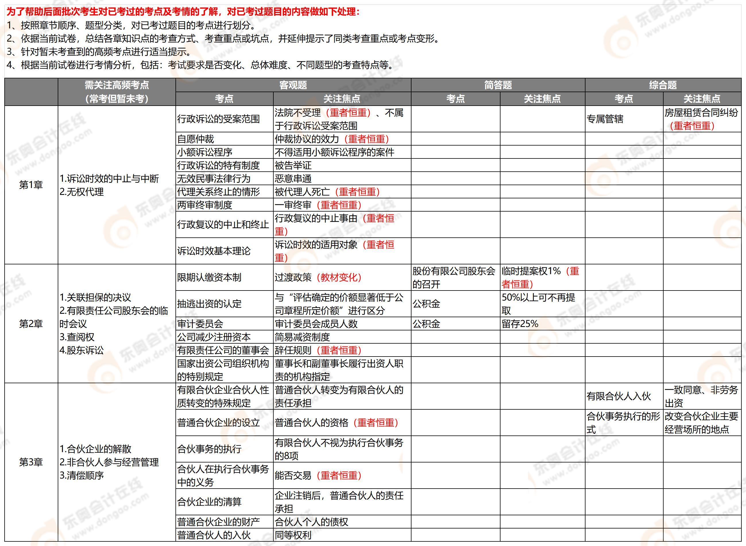 總體來看,中級(jí)經(jīng)濟(jì)法的考試難度與去年相比基本持平,主要考查基礎(chǔ)、常規(guī)的知識(shí)點(diǎn)??疾榈闹攸c(diǎn)依舊不變,主要集中在第一章、第二章、第四章、第五章、第六章、第七章。相較于往年,客觀題中,第一章、第七章的考查分值有所上升;主觀題中,第六章金融法律制度的考查分值有所上升。綜合題結(jié)合了第一章、第三章、第四章、第五章、第六章,綜合題體現(xiàn)出來的各章節(jié)融合度很高??键c(diǎn)相對(duì)常規(guī),專屬管轄、有限合伙人入伙、合伙事務(wù)執(zhí)行的形式、按份共有、租賃合同、民間借貸的計(jì)息規(guī)則等都是比較重要的知識(shí)點(diǎn)。