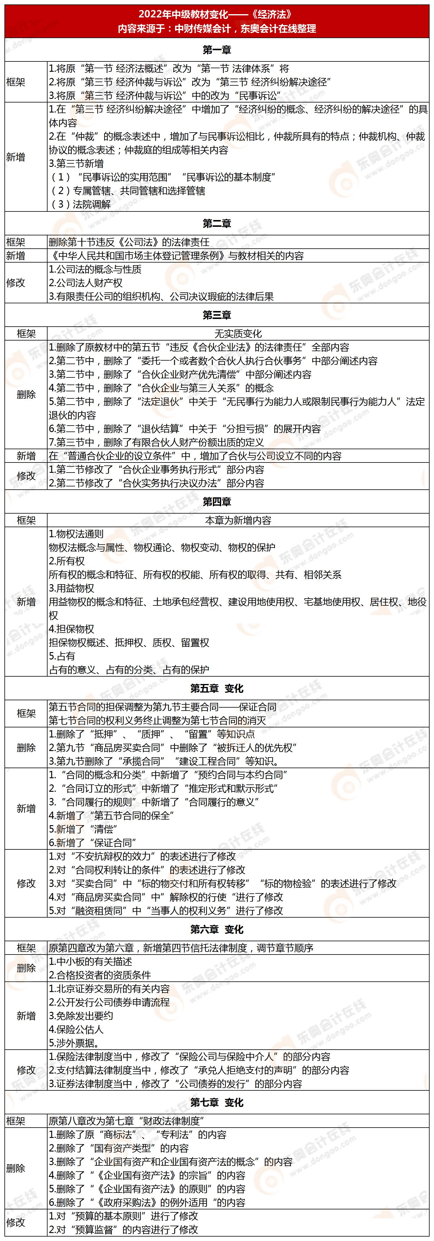 2022年中級會計(jì)《經(jīng)濟(jì)法》教材變化搶先了解!