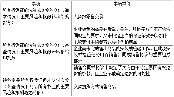 企業(yè)已將商品所有權上的主要風險和報酬轉移給購貨方