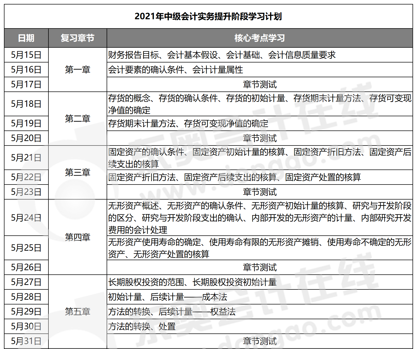 2021年中級會計職稱《中級會計實務(wù)》提升階段學(xué)習(xí)計劃!