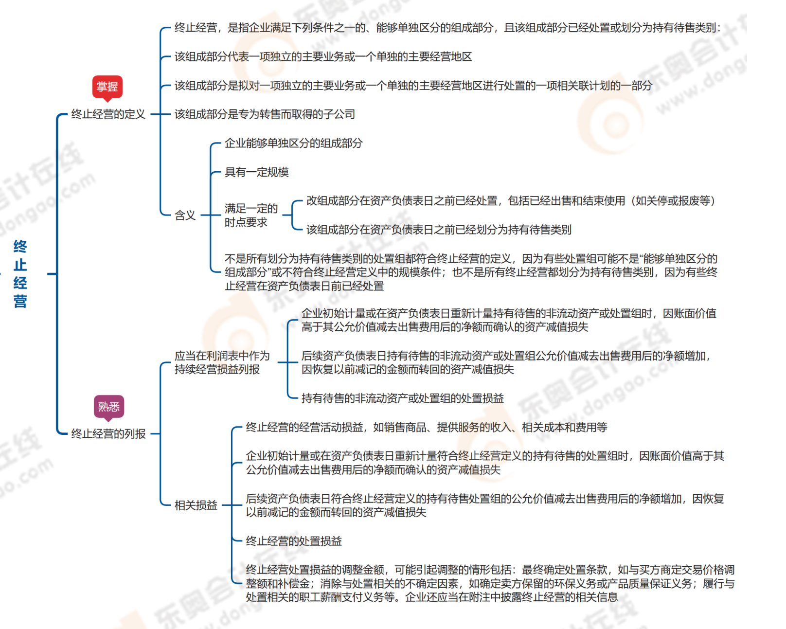 2023年中級(jí)會(huì)計(jì)考試即將開始,為了幫助考生們更好的利用考前這段時(shí)間充分學(xué)習(xí),東奧整理了第十九章【終止經(jīng)營(yíng)】的思維導(dǎo)圖,內(nèi)容如下: