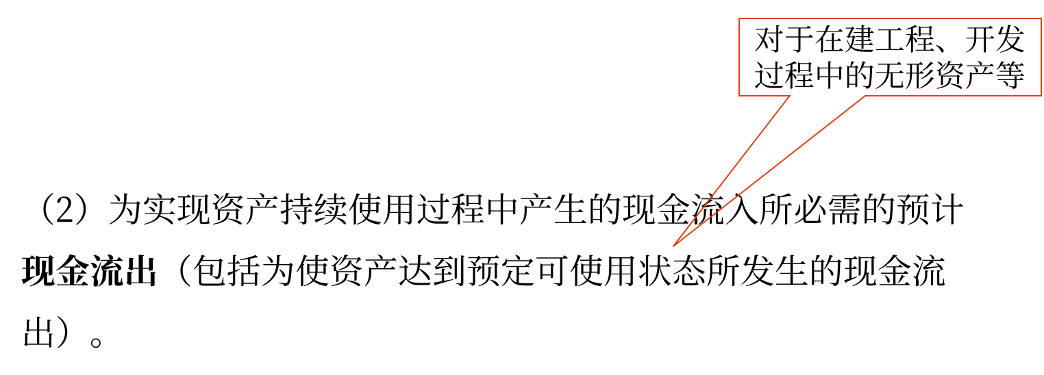 不包括與將來可能會發(fā)生的、尚未作出承諾的重組事項或者與資產(chǎn)改良有關(guān)的預(yù)計未來現(xiàn)金流量。但包括為了維持資產(chǎn)正常運(yùn)轉(zhuǎn)或者資產(chǎn)正常產(chǎn)出水平而必要的支出或者屬于資產(chǎn)維護(hù)支出所對應(yīng)的現(xiàn)金流量。
