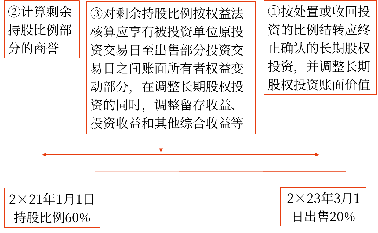 關(guān)鍵點(diǎn):剩余持股比例部分應(yīng)從取得投資時(shí)點(diǎn)采用權(quán)益法核算,即對(duì)剩余持股比例投資追溯調(diào)整,將其調(diào)整到權(quán)益法核算的結(jié)果。