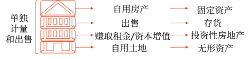 1.自用房地產(chǎn):即為生產(chǎn)商品、提供勞務(wù)或者經(jīng)營(yíng)管理而持有的房地產(chǎn)。(固定資產(chǎn)、無(wú)形資產(chǎn))